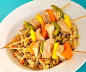 These delicious Baked Veggie and Chicken Skewers are a quick and simple dinner that's filled with fiber and protein. Dinners like this will get you well on your way to transforming your body. Pack the leftovers for a wholesome, fat burning lunch. Servings: 8