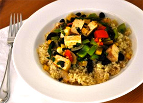 - Place a serving of quinoa on each plate and top it with the vegetable mix.