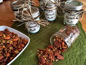 A warm bowl of these chili spiced nuts make a fantastic appetizer or snack to serve at your holiday function. The spice combo is so good, try not to eat them all before your guests arrive! A jar of these would also make a wonderful hostess gift, free of preservatives or harmful ingredients. Servings: 20