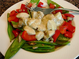 This chicken and veggie dish is light and delicious. Yogurt and curry flavors blend for an enjoyable new chicken experience. Enjoy it as a tasty lunch or a protein packed dinner. Servings: 2