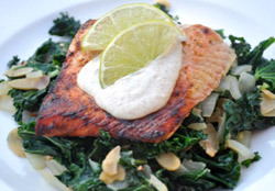 - Serve the salmon on a bed of kale with a dollop of the reserved yogurt.