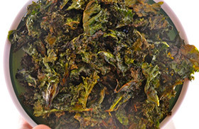Salty, crunchy snack foods are a weakness for most people. Instead of eating chips or popcorn or crackers, which quickly add up in unwanted pounds, make a batch of these delicious, crunchy kale chips. Kale chips are low in carbs and make a delicious crunchy snack.