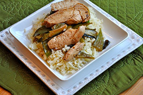 - Return pan to medium-high heat; add remaining 1teaspoon toasted sesame oil to pan. Add snow peas and onions; saute 2 minutes. Add coconut amino mixture and chicken to pan; cook 2 minutes or until liquid is syrupy and chicken is thoroughly heated, stirring frequently. Place 1 cup rice in each of 4 shallow bowls; top each serving with 1 cup chicken mixture.