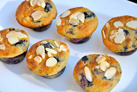 - Fill each mini muffin tin to the top, then sprinkle with sliced almonds.