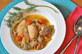 Cooking a healthy dinner at home does not have to be complicated or take lots of time. This simple recipe for chicken, shallots and fresh dill will only take you about 45 minutes from start to finish. Meals that are rich in protein and fiber and low in carbs, like this one, will help you build muscle and stay lean. Servings: 8
