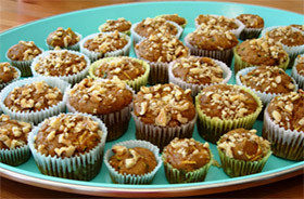 Nutritional Analysis: One mini muffin equals: 92 calories, 3g fat, 15g carbohydrate, 1.5g fiber, and 2g protein.