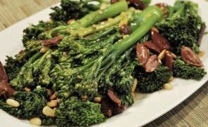 Here's a delicious way to dress up broccoli rabe. Broccoli rabe is a non-heading type of broccoli with long thin leafy stalks that's topped with small florets. It's packed with vitamins A, C and K in addition to potassium, iron and calcium. It also contains phytochemicals that fight cancer and improve your overall health. Servings: 6