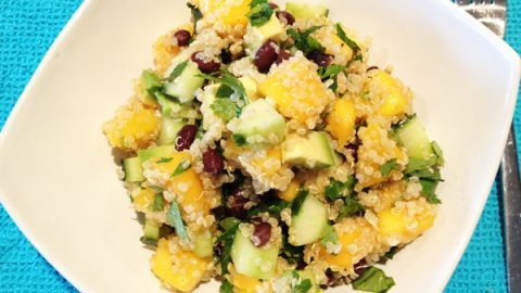 Crisp baby spinach blends with sweet mango, tender chicken and a sprinkle of red quinoa in this refreshing salad. Complete with your veggies, protein and wholegrain, this salad is a balance meal in and of itself.