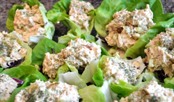 - Place lettuce leaves on plates, evenly divide cabbage on the leaves and then fill with tuna mixture. Sprinkle with dried dill weed.