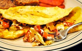 - Fill each omelet with half of the bacon, apple and goat cheese mixture.