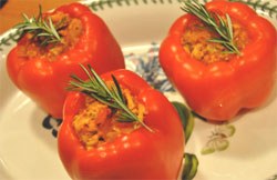 - Stuff each prepared bell pepper with the turkey mixture and place on prepared baking sheet. Cook for 15-20 minutes until the bell peppers are tender.